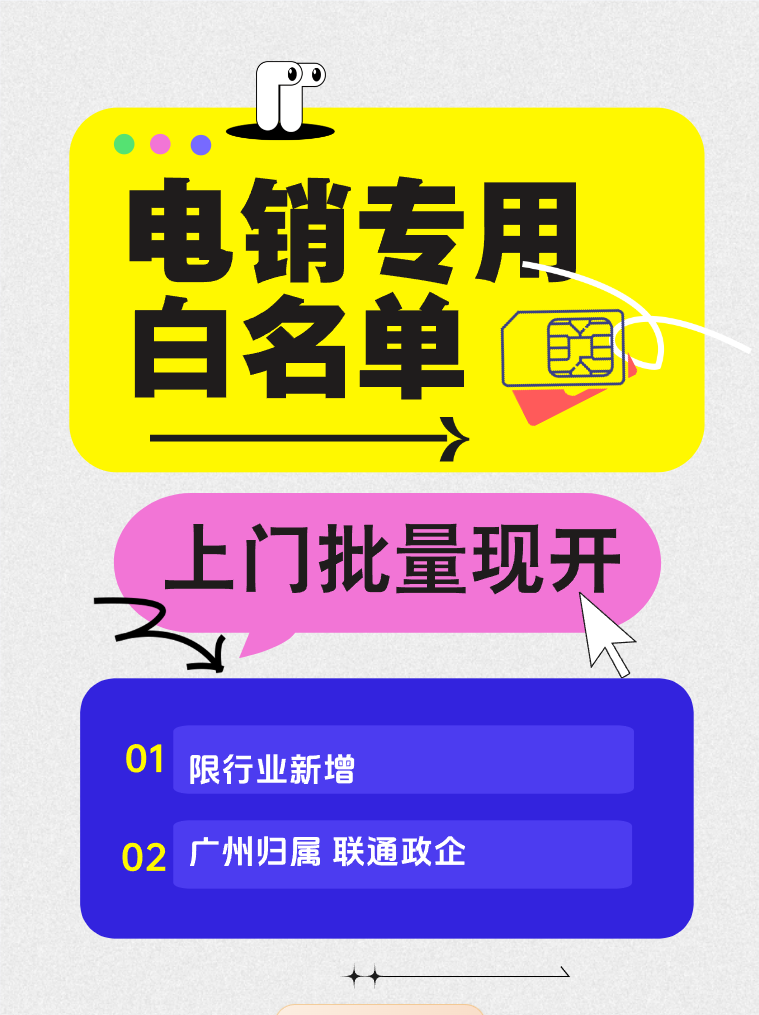 广州电销卡套餐:128元/月,含3000分钟通话,30G流量;企业营业执照办理。高频拨打不封号,封卡免费复通。房产中介、财税、电商、教培行业白名单卡上门办理。